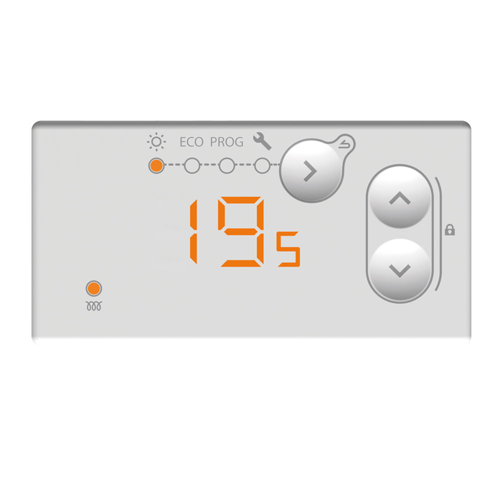 Конвекторът разполага с хомогенно излъчващ челен панел за бързо и равномерно отопление, електронен програмируем термостат с точност до 0.1°C, дигитално управление и други. Отопляема площ: до 7 кв. m. Гаранция: 84 месеца. Страна на произход: Франция