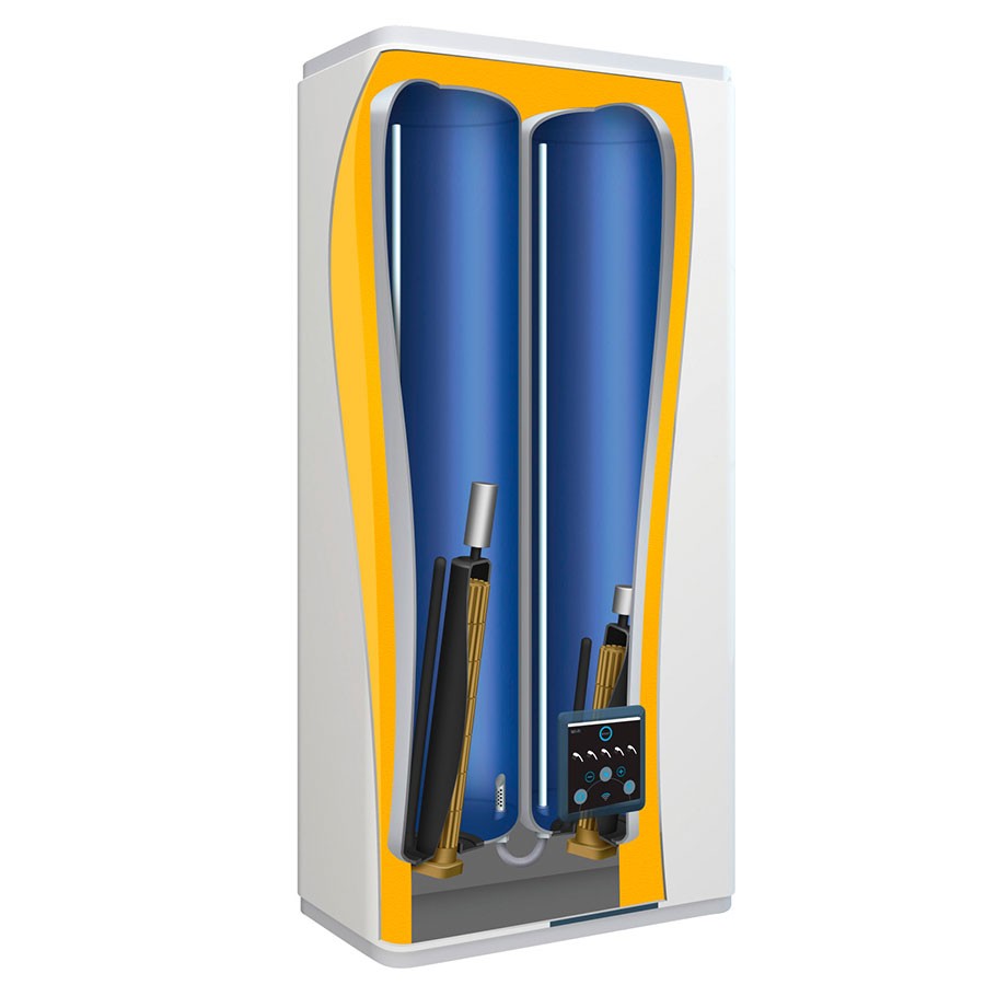 Ултра тънък бойлер с 2 емайлирани водосъдържателя и 2 сухи керамични нагревателя. Vertigo Steatite са перфектно решение за райони с твърда, високо минерализирана и агресивна вода. Бойлерът е мултипозиционен – вертикален или хоризонтален монтаж.