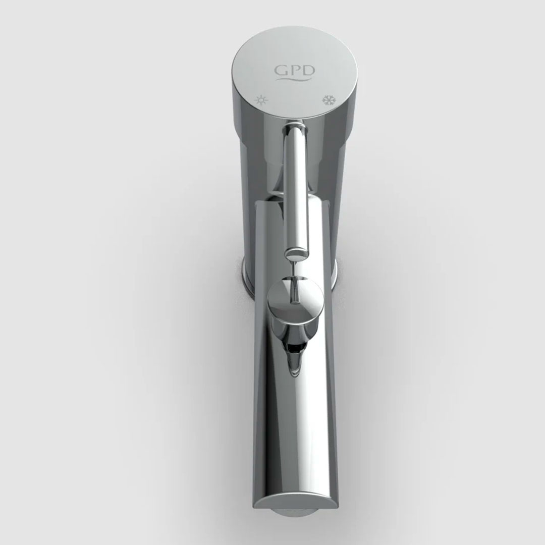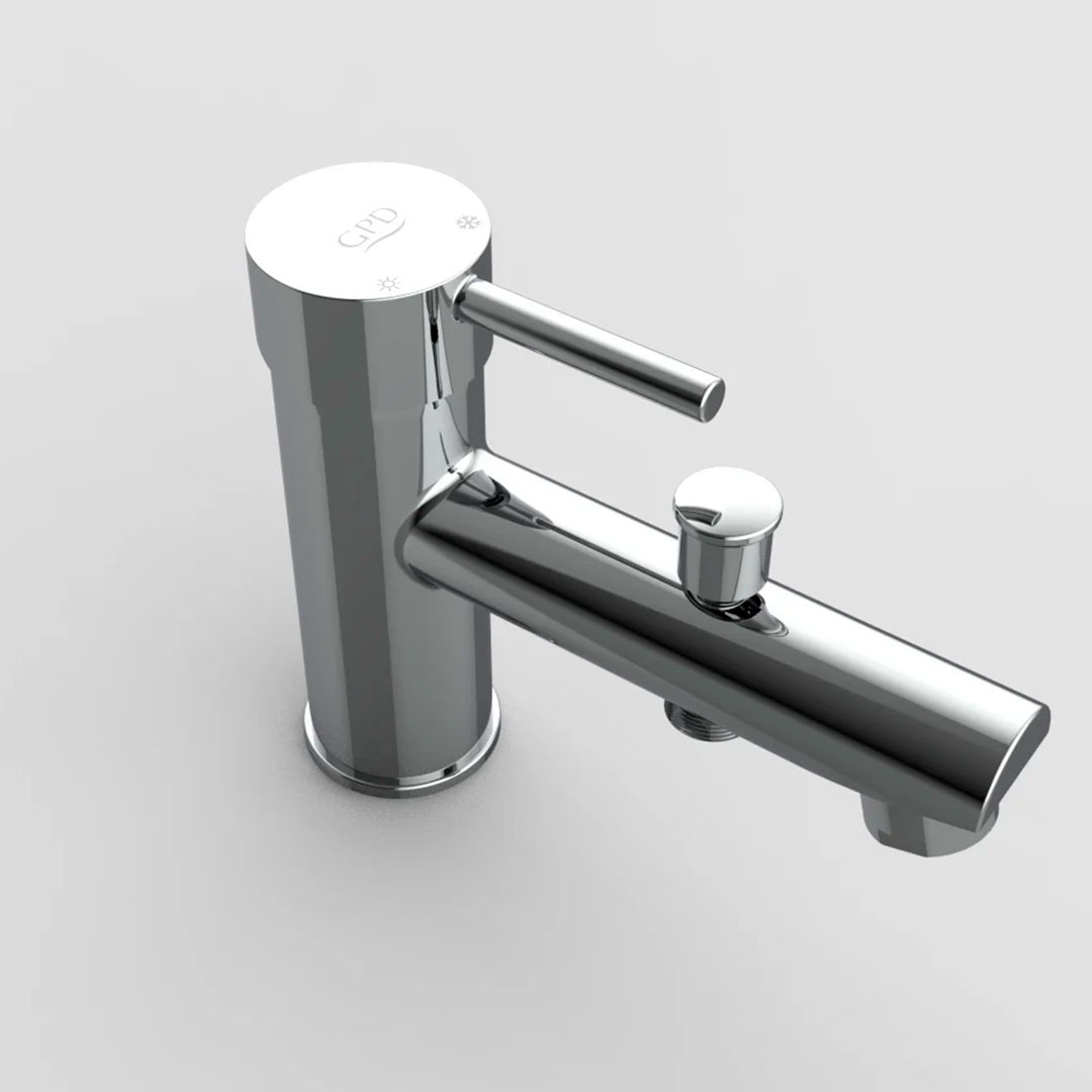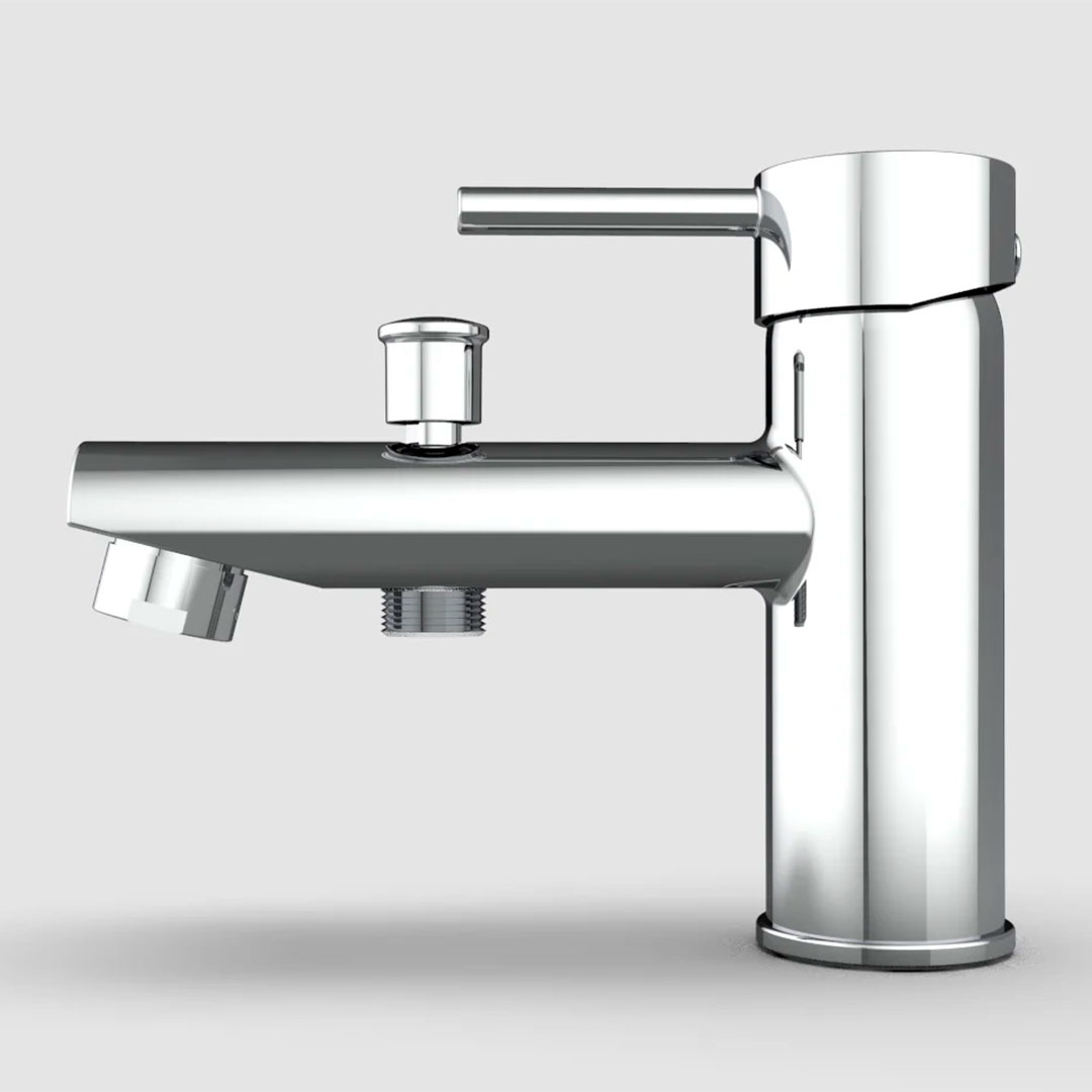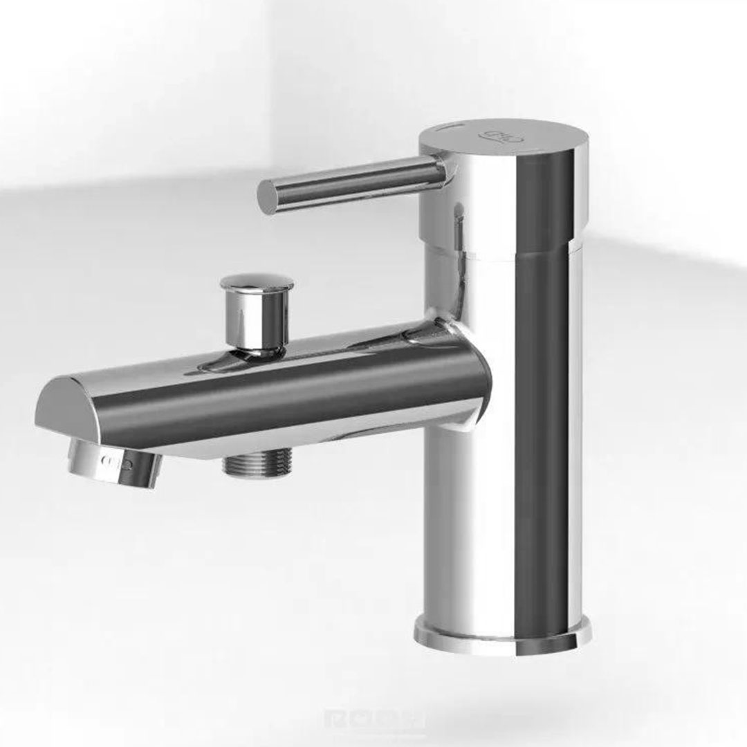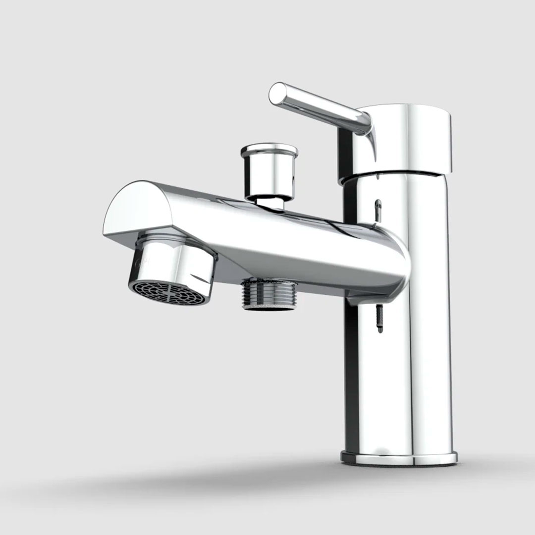 Едноръкохватков комбиниран стоящ смесител за вана/умивалник с превключвател и изход за подвижен душ . Монтира се на умивалник или на борд на вана и към него се свързва подвижен душ.
