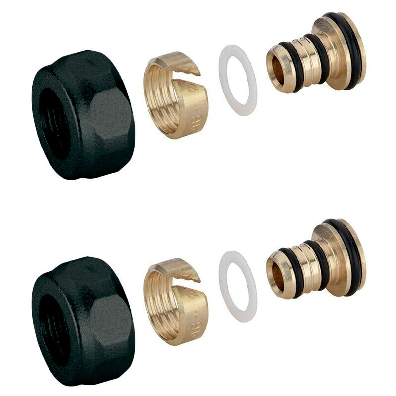 Комплект спирателни кранове за водна лира, черен мат с включени адаптори ¾“ към 16×2 mm
