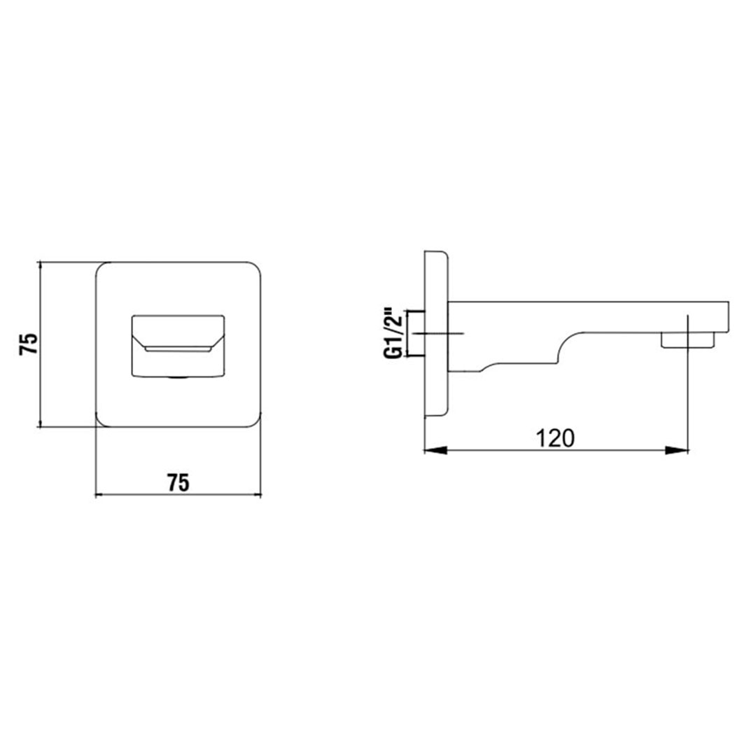 - Къс чучур за вграждане , дължина 12 cm месингово тяло, черно PVD покритие комплект с розетка