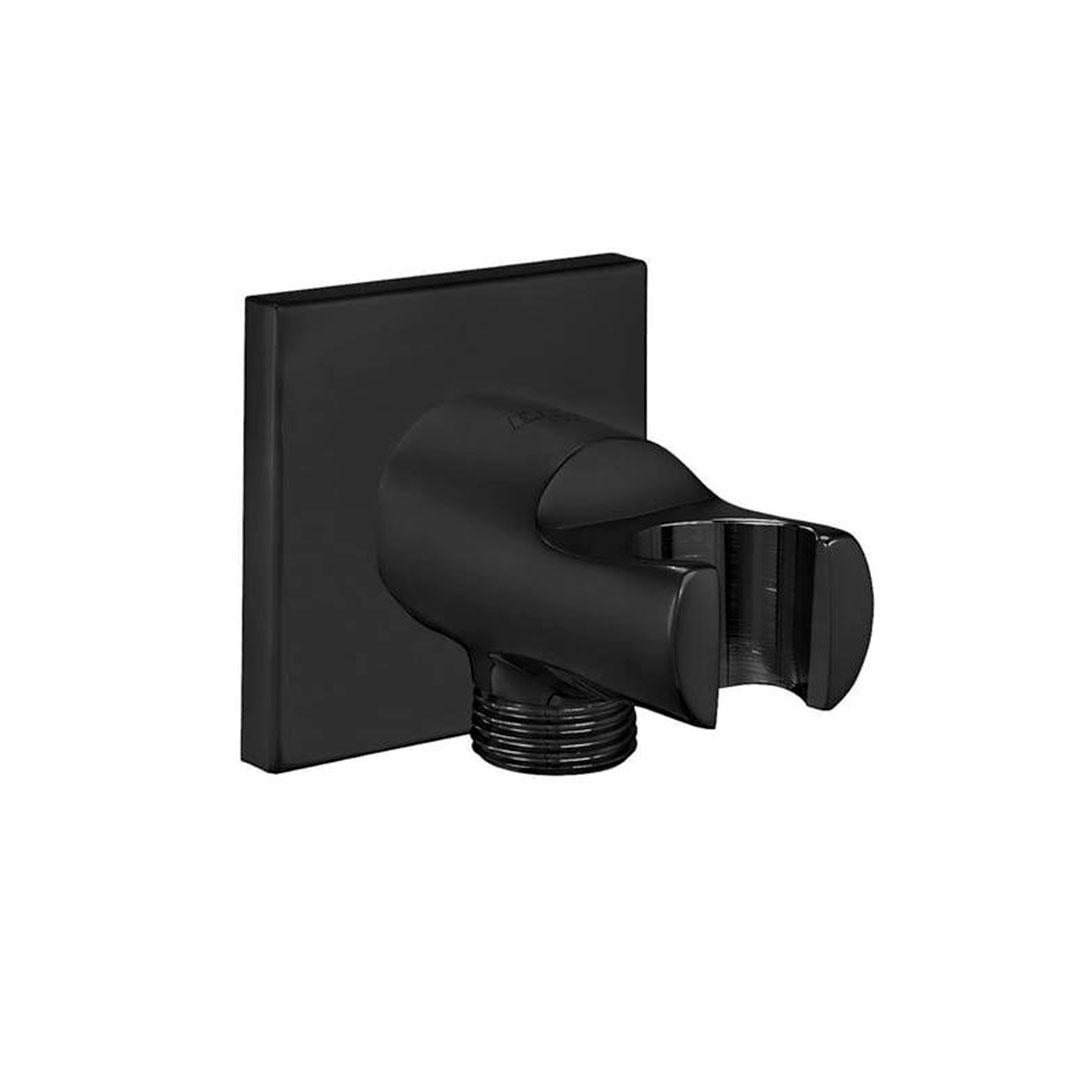 - Квадратно коляно за вграждане с вграден клапан и закачалка за душ,месингово с черно PVD покритие