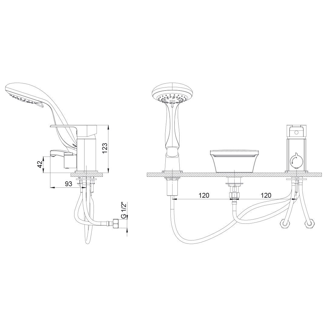 - Керамичен превключвател на две степени (ръчен душ/чучур) интегриран в тялото на смесителя